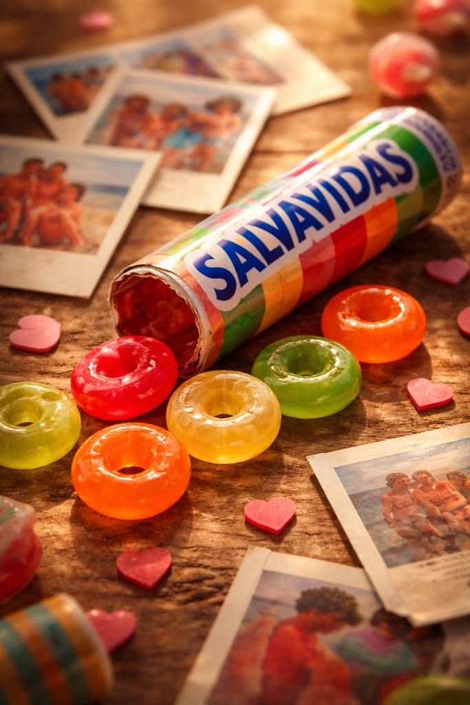 Pequeños círculos de colores y sabores, el verde siempre el más ácido y el rojo infinito en dulzura que se terminaba cuando más ganas tenías de seguir chupando aquel dulce, inexplicablemente alegre.